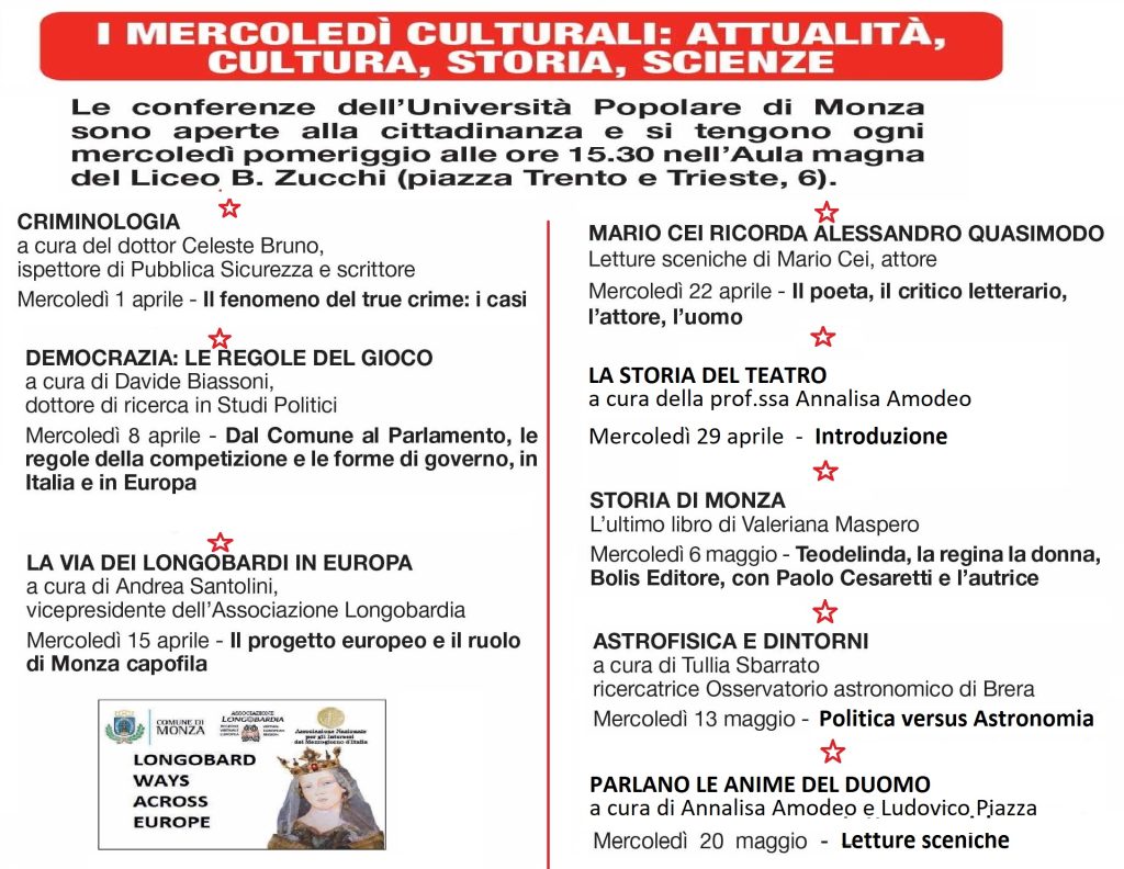 Cicli di lezioni tenute da docenti universitari e personalità di spessore su tematiche culturali classiche e moderne, antichissime e attualissime per vivere la cultura a 360 gradi