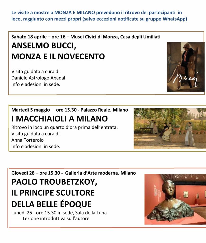 Proponiamo percorsi esclusivi con esperti e guide qualificate per conoscere o rivedere luoghi affascinanti e visitare le mostre d'arte più interessanti in corso.